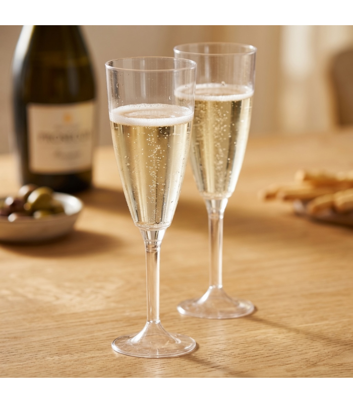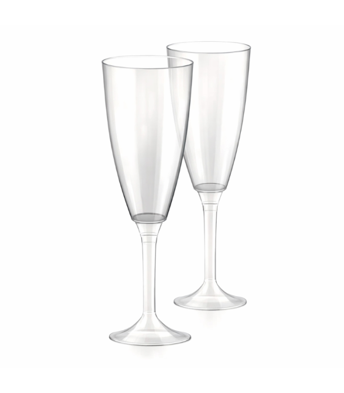 BICCHIERE FLUTE IN PLASTICA RIGIDA PER PROSECCO E CHAMPAGNE RIUTILIZZABILE 150 CC conf. da 6pz